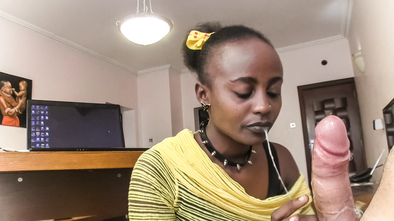 Ebony fuckslut salivating on the chief's tree